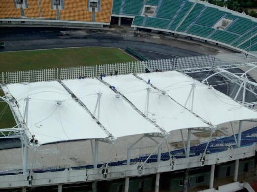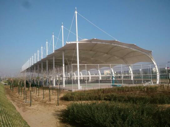 本公司開發的膜結構建筑風格獨特,藝術性強,具有濃厚的現代氣息, 力學特性好,光學熱學性能優,阻燃又自潔,工藝性能佳,成本低,工期短等優點。